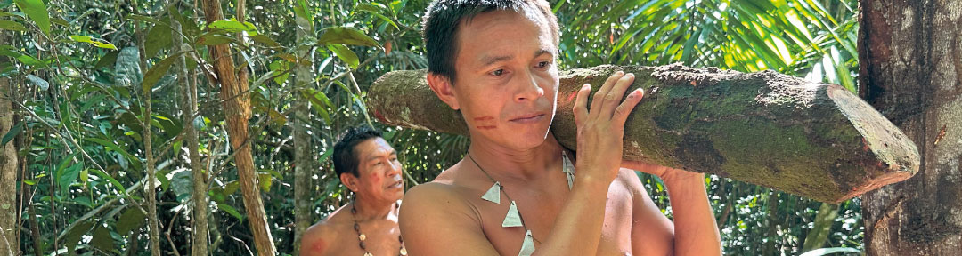 El tronco se extrae de árboles específicos y su corteza es utilizada para confeccionar trajes tradicionales, siguiendo prácticas ancestrales.